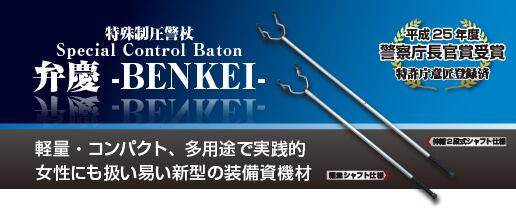警察と共同開発した新型の刺股(さすまた)「弁慶」です。