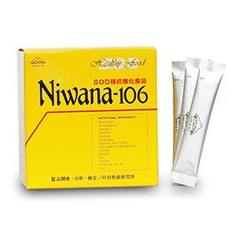 Niwana-106(ニワーナ・ニワナ)は、国際製法特許に基づき、純植物原料を特殊加工し、更に麹を加えて熟成させることによりSOD様物質を大量に産出させた健康補助食品です。